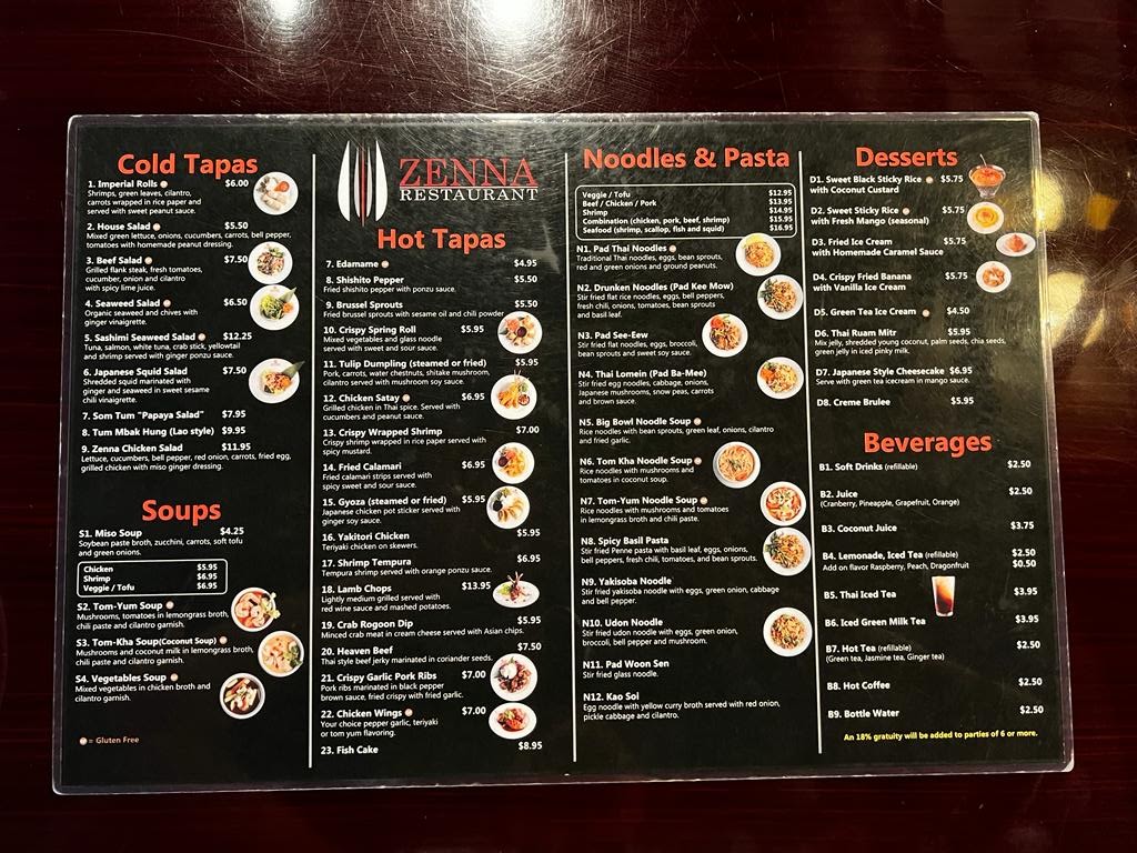 Customer reviews highlight the consistency and thoughtful execution of each dish, with particular praise for the Thai menu’s depth and fiery spice options. Whether it’s the sushi or the bold red curry, Zenna ensures a comforting yet invigorating dining experience, enhanced by attentive service and welcoming atmosphere. A must-try for those seeking genuine Asian flavors late into the night.